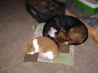 Establerts a cal Paraire, la nostra família de bitxos, ja sense la M'xina, descansa...
