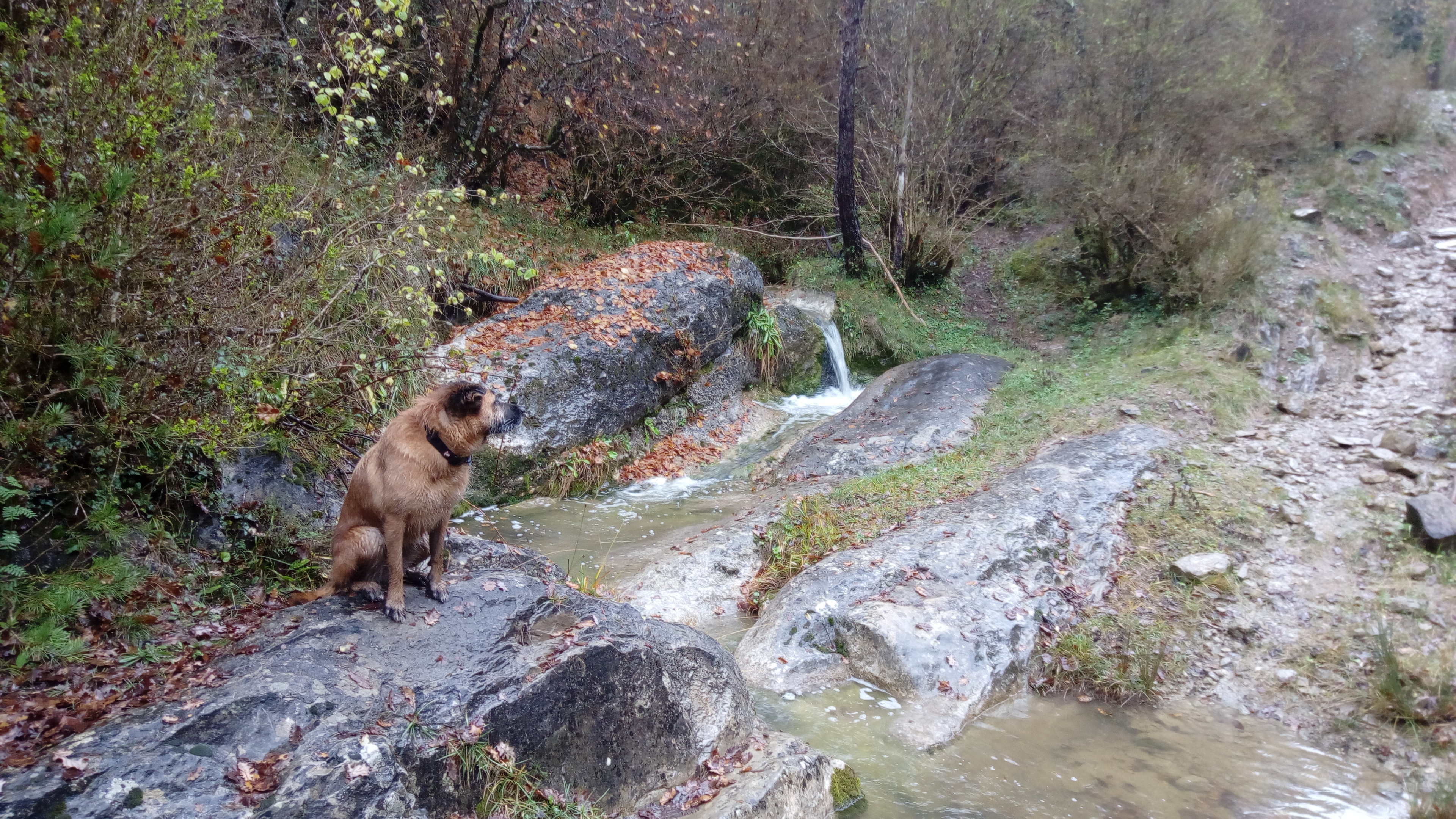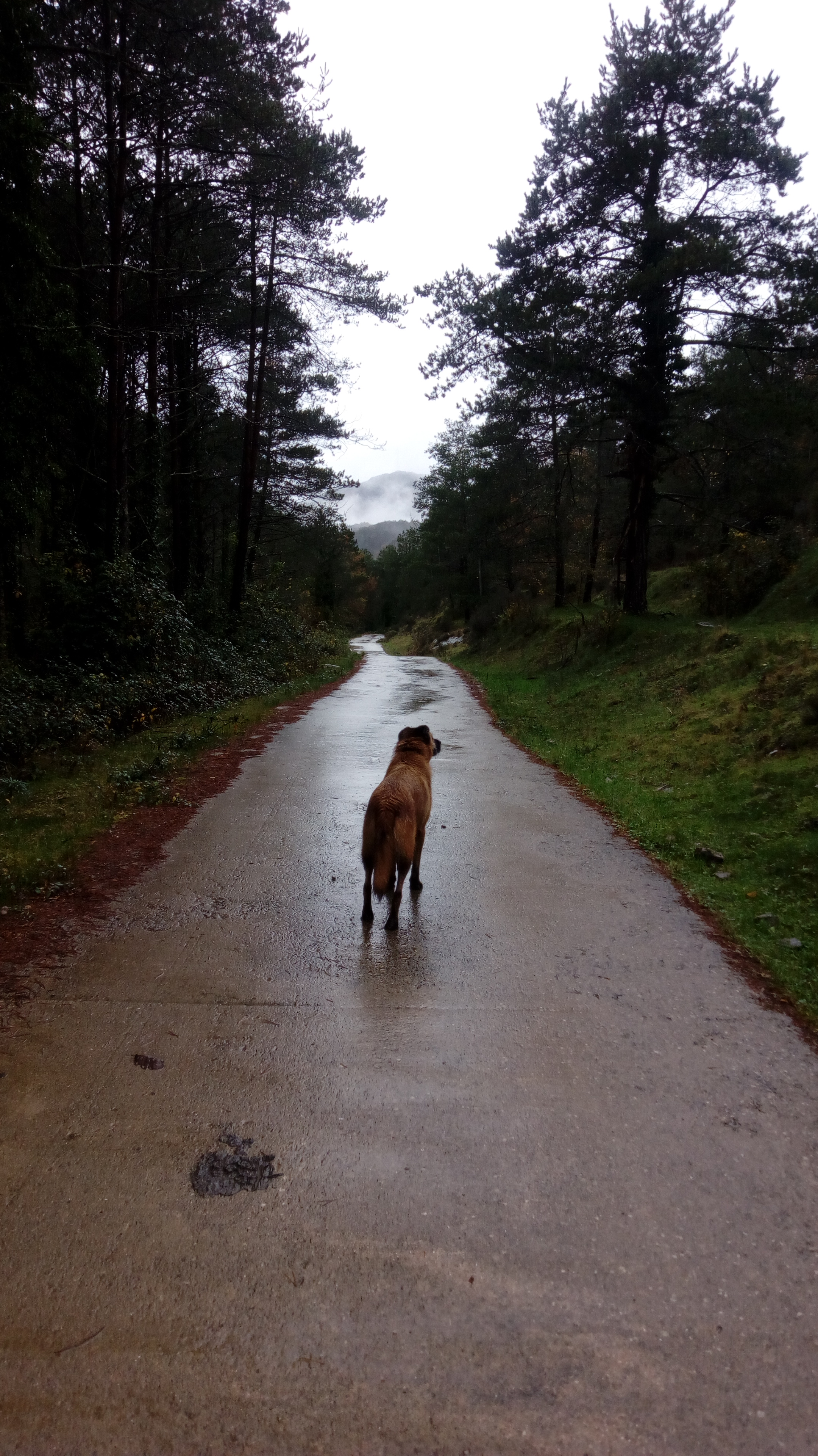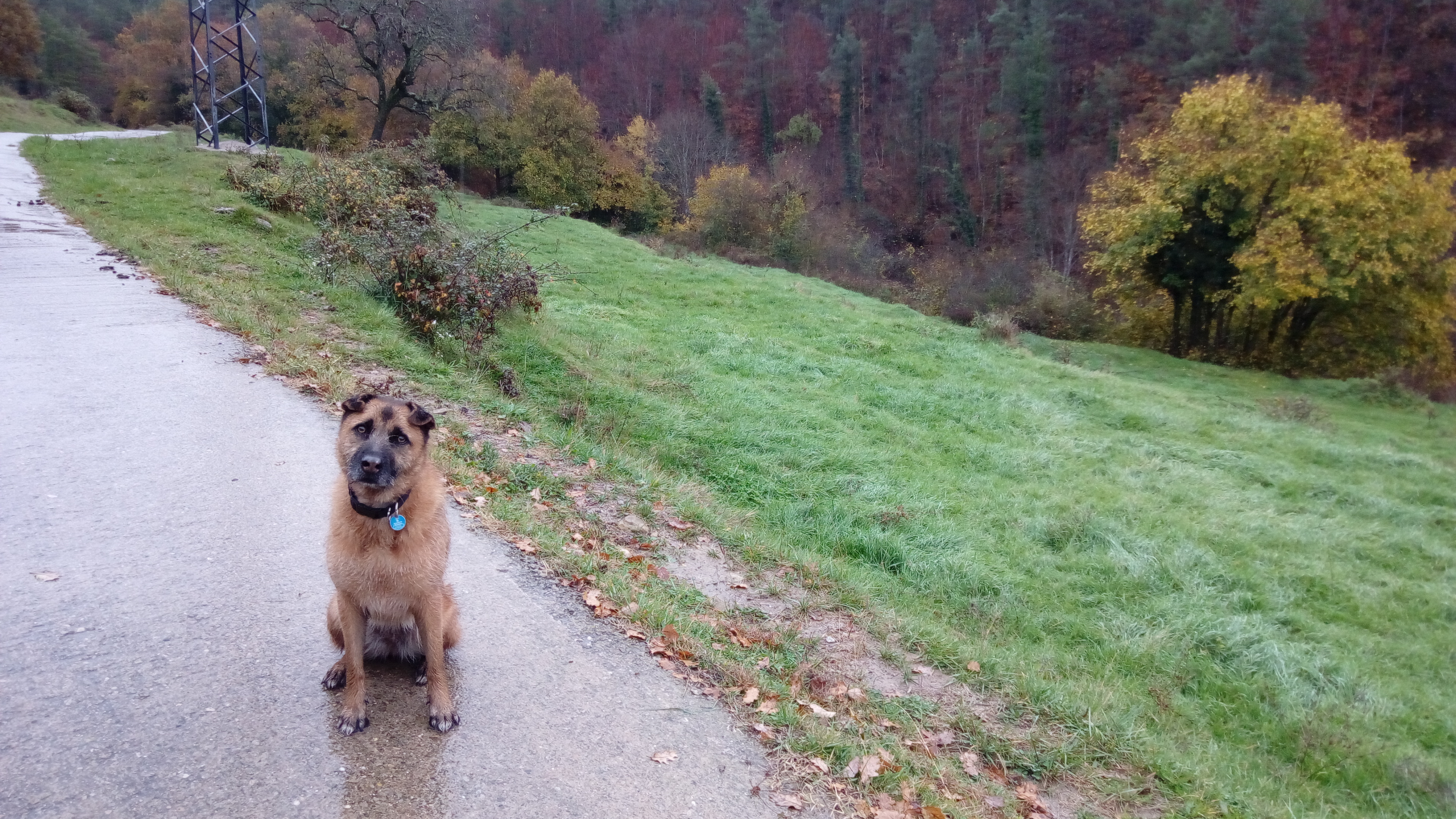 Tanmateix, com que li havia promès a la Montse que li enviaria fotos, la tarda del dimarts, sota la pluja, vam sortir a caminar fins a la font de Baumala i vaig encarregar a la Lluna que fes de model: